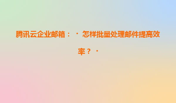 2025-07-05腾讯云企业邮箱:批量处理邮件的高效解决方案 企业邮件管理的痛点与需求 在现代企业运营中,邮件沟通依然是商务往来的核心方式之一。随着业务规模扩大,员工每天需要处理的邮件数量呈几何级增长,传统单封邮件处理...