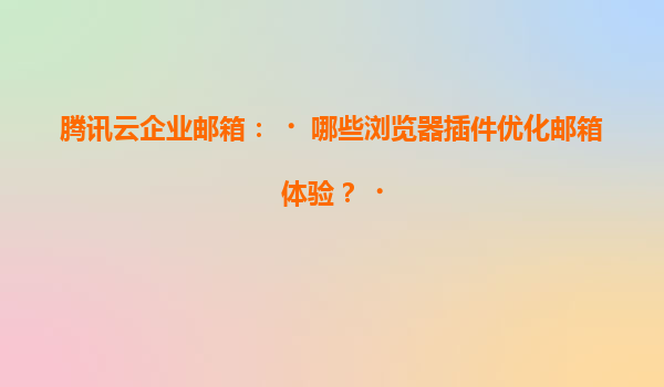 2025-07-05腾讯云企业邮箱:哪些浏览器插件优化邮箱体验? 引言 在数字化办公时代,企业邮箱已成为高效沟通的核心工具。腾讯云企业邮箱凭借稳定、安全的服务,成为众多企业的首选。然而,单纯依赖...