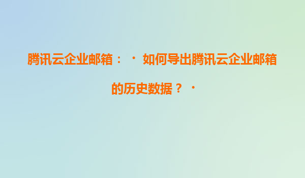 2025-07-05腾讯云企业邮箱:如何导出历史数据及产品优势解析 一、腾讯云企业邮箱简介 腾讯云企业邮箱是基于腾讯多年邮件系统运营经验推出的企业级邮箱服务,提供稳定、安全、高效的邮件通信解决方案。作为腾讯云生态...