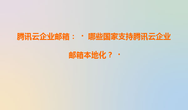2025-07-05腾讯云企业邮箱本地化支持国家及优势解析 一、腾讯云企业邮箱本地化支持的国家 腾讯云企业邮箱作为全球化的企业通信解决方案,目前已在中国大陆、中国香港、新加坡、美国、德国、韩国、日本、印度等多个国...