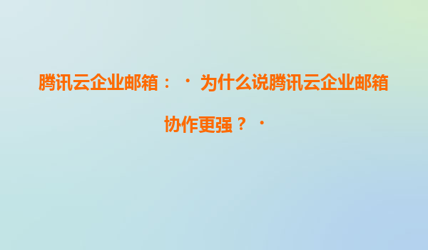 腾讯云企业邮箱:为什么说腾讯云企业邮箱协作更强? 在当今数字化办公环境中,企业邮箱不仅是沟通工具,更是团队协作的核心平台。腾讯云企业邮箱凭借腾讯强大的技术实力和生态整合能力,为企业提供了高效、安全...