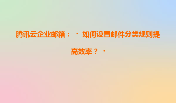 2025-07-05腾讯云企业邮箱:如何设置邮件分类规则提高效率 引言:企业邮箱管理的重要性 在现代企业中,高效的邮件管理是提升工作效率的关键。腾讯云企业邮箱作为一款专业的企业级邮箱服务,不仅提供了稳定的邮件收发...