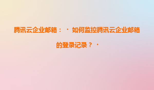 2025-07-05腾讯云企业邮箱:如何监控腾讯云企业邮箱的登录记录? 一、腾讯云企业邮箱的监控需求背景 随着企业数字化转型加速,邮箱作为核心通信工具,其安全性至关重要。腾讯云企业邮箱提供企业级邮件服务,而登录记...