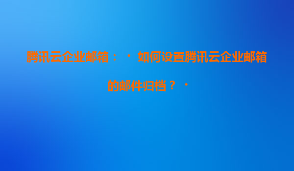 2025-07-04腾讯云企业邮箱:如何设置邮件归档及优势解析 一、腾讯云企业邮箱邮件归档的重要性 邮件归档是企业数据管理的重要组成部分,尤其对于合规性要求严格的行业(如金融、医疗、法律等),归档功能可确保邮件历...