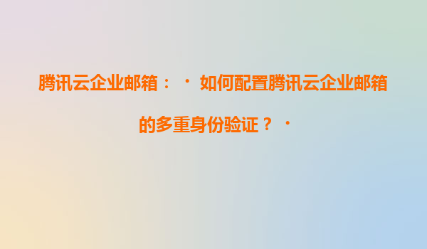 2025-07-03腾讯云企业邮箱:如何配置多重身份验证(MFA) 一、为什么要启用多重身份验证? 在数字化办公时代,企业邮箱承载着大量敏感信息和业务往来。腾讯云企业邮箱的多重身份验证(Multi-FactorAuthentication,...