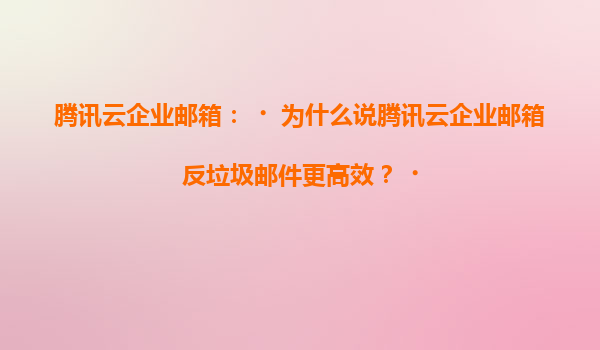 2025-07-03腾讯云企业邮箱:为什么说腾讯云企业邮箱反垃圾邮件更高效? 引言 在数字化办公日益普及的今天,企业邮箱作为沟通协作的核心工具,其安全性、稳定性及反垃圾邮件能力直接影响企业的运营效率。腾讯...