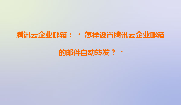 2025-07-03腾讯云企业邮箱:如何设置邮件自动转发及腾讯云生态优势解析 一、腾讯云企业邮箱自动转发的应用场景 邮件自动转发是企业管理中常用的功能,适用于以下场景: 团队...