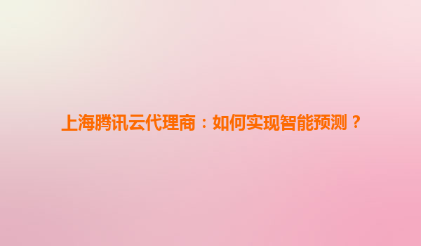 2025-07-03上海腾讯云代理商视角:如何利用腾讯云实现智能预测 腾讯云的智能预测能力概述 作为上海地区的腾讯云代理商,我们深知企业对于智能预测的需求日益增长。腾讯云凭借其强大的计算能力、丰富的数据服务以及成熟的人工...