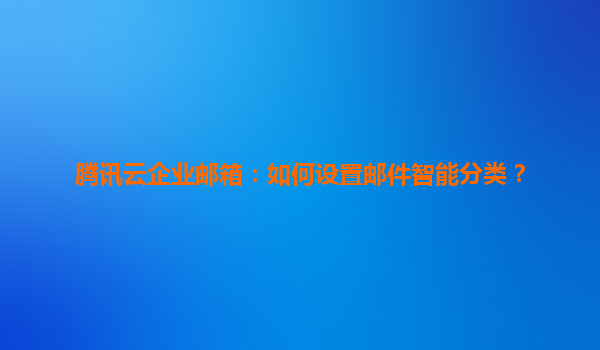 2025-07-03腾讯云企业邮箱:如何设置邮件智能分类,提升办公效率 一、腾讯云企业邮箱的智能分类功能简介 腾讯云企业邮箱作为一款高效的企业级邮箱服务,提供了强大的邮件智能分类功能,能够帮助用...