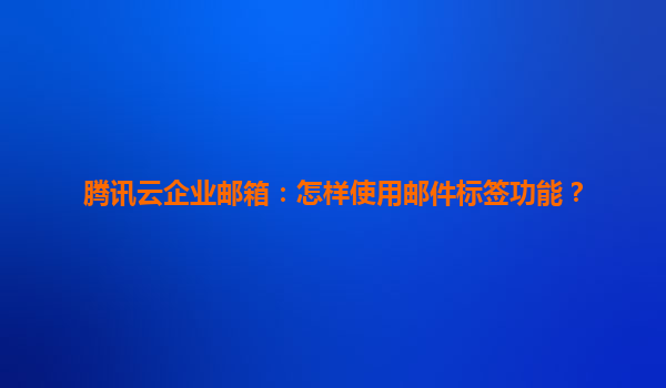 2025-07-03腾讯云企业邮箱:怎样使用邮件标签功能? 一、腾讯云企业邮箱标签功能简介 腾讯云企业邮箱作为一款高效的企业办公工具,提供了丰富的邮件管理功能,其中邮件标签(Label)功能是提升...