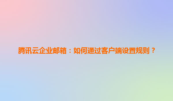 2025-07-03腾讯云企业邮箱:如何通过客户端设置规则? 一、腾讯云企业邮箱的核心优势 腾讯云企业邮箱作为国内领先的企业级邮件服务解决方案,依托腾讯的技术积累和生态系统,具备以下核心优势: ...