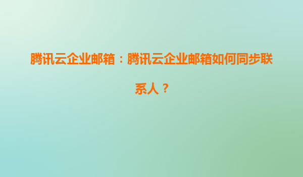 2025-07-02腾讯云企业邮箱:如何高效同步联系人? 一、腾讯云企业邮箱联系人同步功能简介 腾讯云企业邮箱作为一款专业的商务沟通工具,提供了完善的联系人同步功能,支持多终端实时更新、跨平台管...