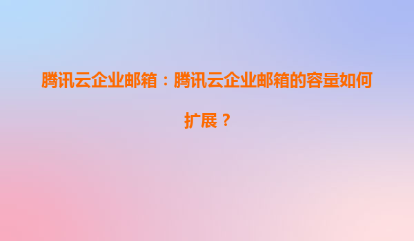 2025-07-02腾讯云企业邮箱容量扩展指南:灵活应对企业增长需求 一、腾讯云企业邮箱的核心优势 腾讯云企业邮箱作为企业级邮件服务解决方案,依托腾讯强大的技术实力和生态体系,具...