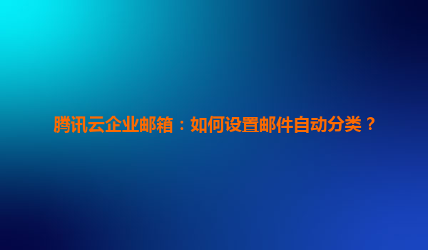 2025-07-01腾讯云企业邮箱:如何设置邮件自动分类? 一、腾讯云企业邮箱的自动分类功能概述 腾讯云企业邮箱作为一款高效的企业级邮件服务,提供了强大的邮件自动分类功能,帮助企业用户提升邮件管理效率。通过智能规...