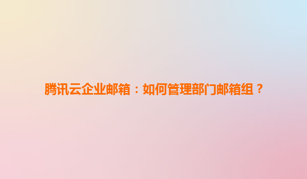 2025-07-01腾讯云企业邮箱:高效管理部门邮箱组的全方位指南 腾讯云企业邮箱的核心优势 腾讯云企业邮箱作为国内领先的企业级邮件服务,依托腾讯强大的技术生态,提供高可用性、安全稳定的邮件系统。其独特的分布式架构确...