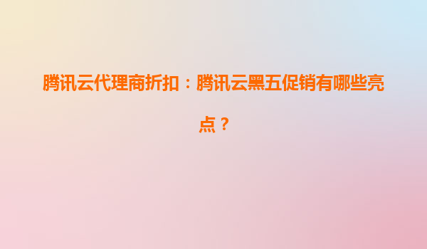 2025-07-01腾讯云黑五促销亮点解析:代理商折扣与官方优惠的双重加持 一、腾讯云黑五促销核心亮点 每年11月的"黑色星期五"是腾讯云年度最大促销节点之一,2023年黑五活动预计将围绕以下核心优势展...