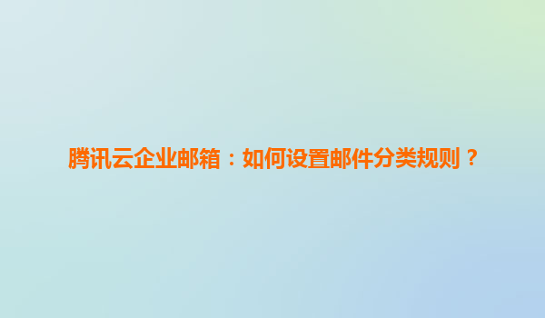 2025-07-01腾讯云企业邮箱:如何高效设置邮件分类规则? 一、腾讯云企业邮箱的核心优势 腾讯云企业邮箱作为国内领先的企业级邮件服务,具备以下显著优势: 高安全性:采用银行级加密传输,支持SPF/DKIM/...