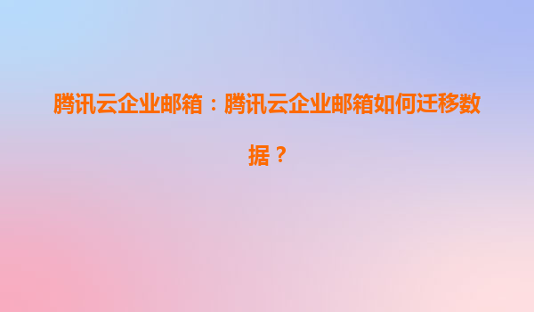 2025-07-01腾讯云企业邮箱:腾讯云企业邮箱如何迁移数据? 一、腾讯云企业邮箱的优势 腾讯云企业邮箱作为一款专业的企业级邮箱服务,凭借其强大的功能、稳定的性能和优质的服务,赢得了众多企业的青睐。以下是腾讯云...