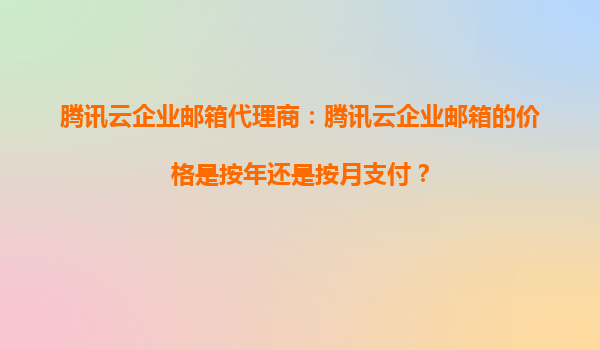 2025-11-03腾讯云企业邮箱代理商:腾讯云企业邮箱的价格是按年还是按月支付? 一、腾讯云企业邮箱的付费模式 腾讯云企业邮箱作为一款专业的企业级邮箱服务,提供了灵活的付费方式,以满足不同企业的需求。目前,腾讯云...
