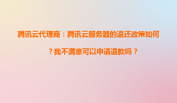 2025-11-03腾讯云代理商解读:腾讯云服务器退还政策及退款申请指南 一、腾讯云服务器退款政策概述 腾讯云作为国内领先的云计算服务商,提供灵活的退款政策以满足用户需求。根据官方规则,包年包月实例在购买后5天...
