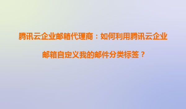 2025-11-03腾讯云企业邮箱代理商:如何利用腾讯云企业邮箱自定义邮件分类标签? 一、腾讯云企业邮箱的核心优势 腾讯云企业邮箱作为一款面向企业级用户的高效邮箱解决方案,具备以...