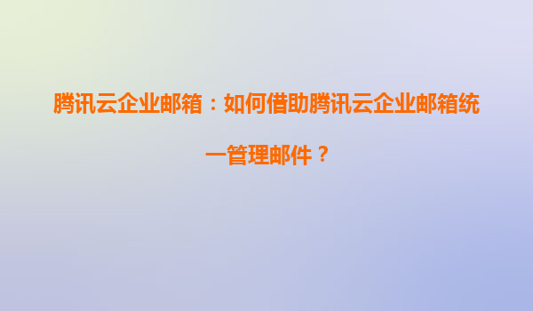 2025-06-28#腾讯云企业邮箱:统一邮件管理解决方案 下面我将为您详细介绍如何借助腾讯云企业邮箱实现高效统一的邮件管理: 为什么需要统一邮件管理? 在数字...