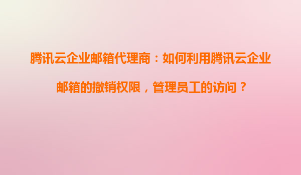 2025-11-03腾讯云企业邮箱代理商:如何利用撤销权限高效管理员工访问权限 一、腾讯云企业邮箱的核心优势 作为国内领先的企业级邮箱服务提供商,腾讯云企业邮箱凭借以下优势成为众...