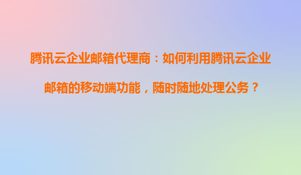 2025-11-03腾讯云企业邮箱代理商指南:如何高效利用移动端功能随时随地处理公务 腾讯云企业邮箱的移动办公优势 在数字化办公时代,移动端的高效协同能力成为企业提升生产力的关键。腾...
