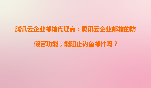 2025-11-03腾讯云企业邮箱代理商:腾讯云企业邮箱的防假冒功能,能阻止钓鱼邮件吗? 引言 随着互联网技术的飞速发展,企业邮箱已经成为企业内部沟通和外部业务往来的重要工具。然而,随之而来的网络安全问题也日益严...