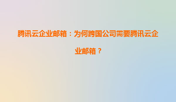 2025-06-28腾讯云企业邮箱:为何跨国公司需要腾讯云企业邮箱? 在全球化商业环境中,跨国公司面临着邮件通信的独特挑战——时区差异、语言障碍、数据主权合规以及跨地域团队协作需求。腾讯云企业邮箱凭借腾讯云强大的技术底...