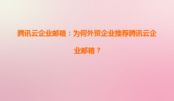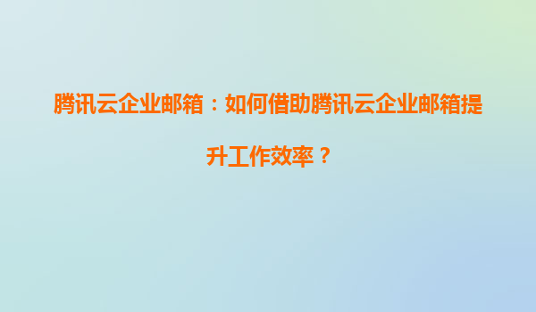 #腾讯云企业邮箱:提升工作效率的智能解决方案 以下是我为您撰写的关于腾讯云企业邮箱提升工作效率的文章,以HTML格式呈现: 在...