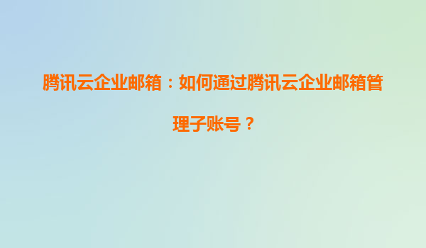 2025-06-27腾讯云企业邮箱:高效管理子账号的全面指南 在数字化办公时代,企业邮箱不仅是沟通工具,更是企业信息管理的中枢。腾讯云企业邮箱凭借其强大的子账号管理功能,为企业提供了精细化的权限控制和...