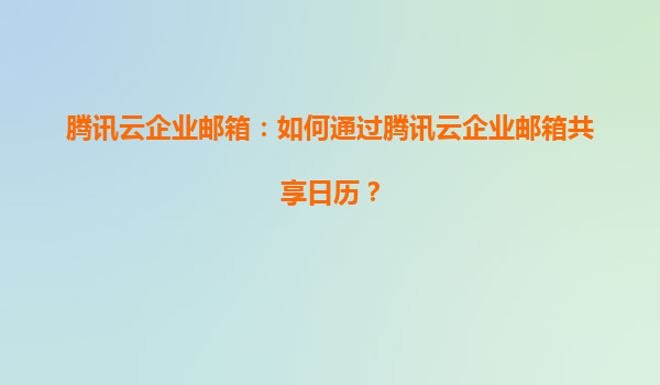 高效协作新体验:腾讯云企业邮箱共享日历功能深度解析 团队协作的时间管理革命 在快节奏的商业环境中,高效的日程管理已成为企业协同办公的核心需求。腾讯云企业邮箱推出的共享日历功能...