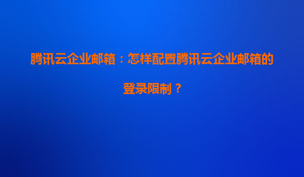 2025-06-26腾讯云企业邮箱:全方位登录限制配置指南 一、企业邮箱安全防护的重要性 在数字化办公时代,企业邮箱承载着核心商业机密与重要沟通数据。腾讯云企业邮箱基于微信同源的安全防护体系,提供企业级加密传...