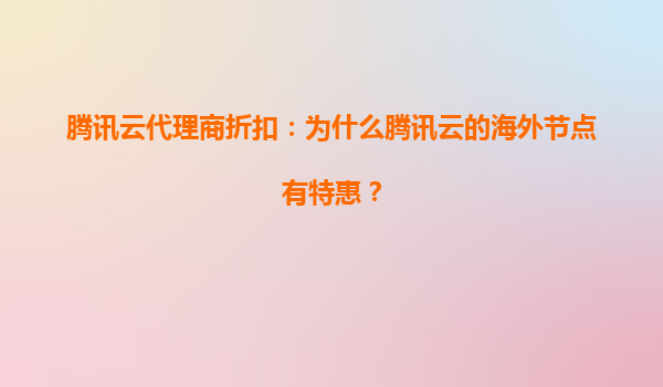 2025-06-25腾讯云代理商折扣:为什么腾讯云的海外节点有特惠? 引言:海外特惠背后的战略布局 近年来,腾讯云在海外节点持续推出代理商专属折扣,部分区域降幅高达30%以上。这一现象并非偶然,而是...