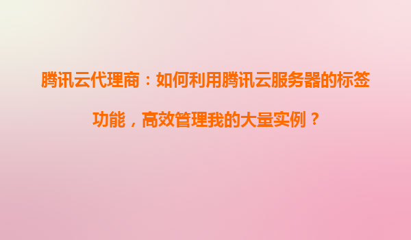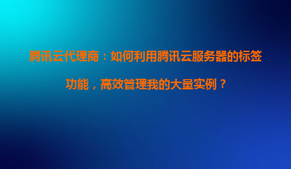 腾讯云代理商:如何利用腾讯云服务器的标签功能,高效管理我的大量实例? 一、腾讯云标签功能的优势与核心价值 腾讯云标签(Tag)功能是为企业级用户设计的资源分类工具,尤其适合代理商业场景下大规模实例的管理...
