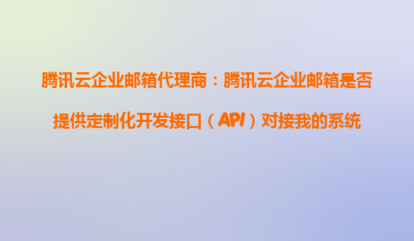 2025-11-02腾讯云企业邮箱代理商:腾讯云企业邮箱是否提供定制化开发接口(API)对接我的系统? 引言 随着企业数字化转型的深入,企业邮箱的需求已不仅仅局限于基础的邮件收发功能。越来越多的企业希望通过API接口将...