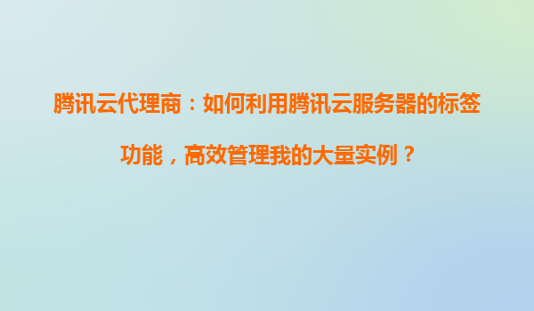 腾讯云代理商:如何利用腾讯云服务器的标签功能,高效管理我的大量实例? 一、腾讯云标签功能的优势与核心价值 腾讯云标签(Tag)功能是为企业级用户设计的资源分类工具,尤其适合代理商业场景下大规模实例的管理...