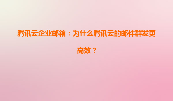 2025-06-20腾讯云企业邮箱:为什么腾讯云的邮件群发更高效? 一、技术架构优势:底层基础设施的强大支撑 腾讯云企业邮箱依托腾讯自研的分布式集群架构,在全球部署超过2000个节点服务器,形成智能...