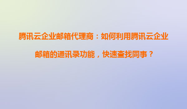 2025-11-02腾讯云企业邮箱:通讯录功能助您高效联系同事 企业协作基石:通讯录的核心价值 在现代化办公场景中,快速定位团队成员联系方式直接影响协作效率。腾讯云企业邮箱的通讯录功能作为企业级管理工具,通过智能...