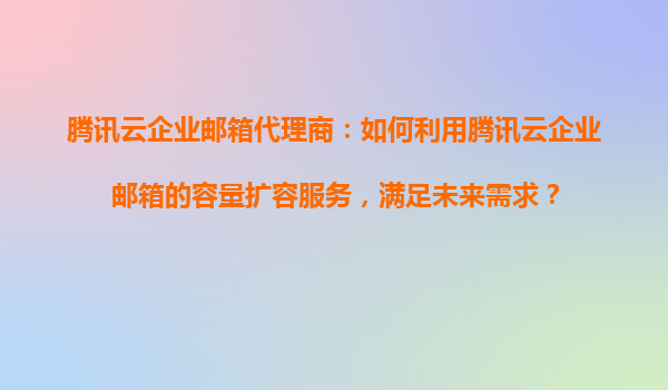 2025-11-02腾讯云企业邮箱代理商:如何利用腾讯云企业邮箱的容量扩容服务,满足未来需求? 一、腾讯云企业邮箱的核心优势 腾讯云企业邮箱作为国内领先的企业级邮件服务,凭借腾讯强大的技术实...