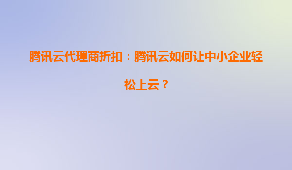 2025-06-20腾讯云代理商折扣:中小企业轻松上云的智慧之选 中小企业上云的时代机遇与挑战 在数字化转型浪潮中,中小企业面临双重挑战:既要快速拥抱云计算提升竞争力,又受限于预算和技术储备。传...