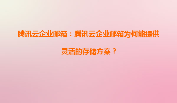 2025-06-19腾讯云企业邮箱为何能提供灵活的存储方案? 一、云计算基础设施奠定存储弹性根基 腾讯云企业邮箱依托腾讯云遍布全球的1300+CDN节点和分布式存储架构,构建了弹性存储底座。通过云原生技术实现存储资源的池化管...