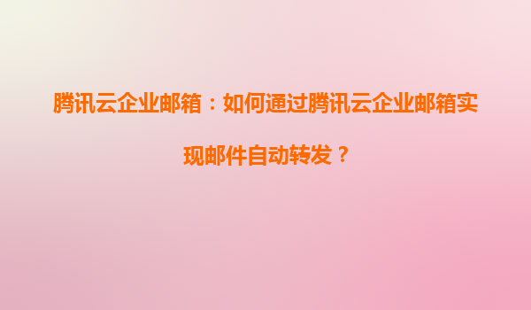 2025-06-19腾讯云企业邮箱:如何高效实现邮件自动转发 一、腾讯云企业邮箱的自动转发核心价值 在数字化办公场景中,邮件自动转发是实现信息高效流转的关键功能。腾讯云企业邮箱通过智能化邮件管理...