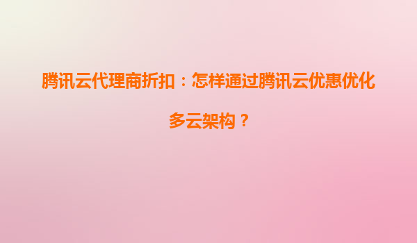 腾讯云代理商折扣:如何通过优惠策略优化多云架构成本与性能 一、多云架构的挑战与腾讯云的价值定位 随着企业数字化转型加速,多云架构已成为主流趋势。通过组合不同云服务商的优势,企...