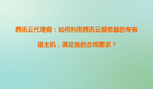 2025-11-02腾讯云代理商:如何利用腾讯云服务器的专有宿主机,满足合规要求? 一、什么是专有宿主机? 腾讯云专有宿主机(CDH)是一种提供物理服务器独享资源的云计算服务,客户可独占整台物理服务...