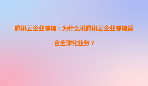 2025-06-19以下是根据您的要求撰写的HTML格式文章: 腾讯云企业邮箱:全球化业务的智能通信基石 全球加速网络打破地域边界 腾讯云企业邮箱依托腾讯全球部署的1300+加速节点,实现邮...