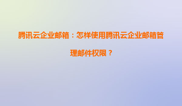 2025-06-19腾讯云企业邮箱:精细化邮件权限管理指南 权限管理:企业信息安全的基石 在数字化办公时代,企业邮件承载着大量商业机密和敏感信息。腾讯云企业邮箱提供的精细化权限管理体系,让企业能够根据不同岗位需求设置...