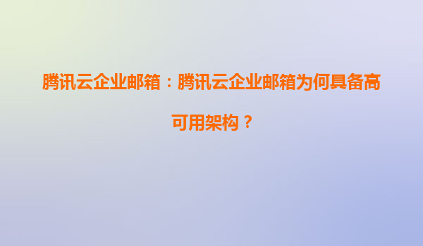 腾讯云企业邮箱为何具备高可用架构? 一、高可用架构的核心价值 在数字化时代,企业邮箱作为关键通信枢纽,服务中断可能导致业务停滞甚至客户流失。腾讯云企业邮箱通过多层次高可用架构...