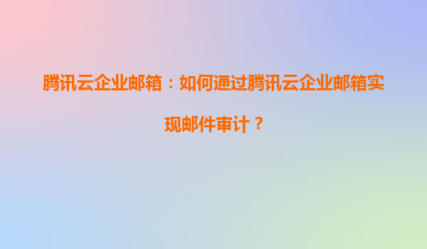 2025-06-15腾讯云企业邮箱:如何通过腾讯云企业邮箱实现邮件审计? 一、邮件审计:企业合规与安全的刚性需求 在数据合规监管日益严格的数字化时代,邮件审计已成为企业管理的核心需求。通过系统化审查邮件收发记录、内容...